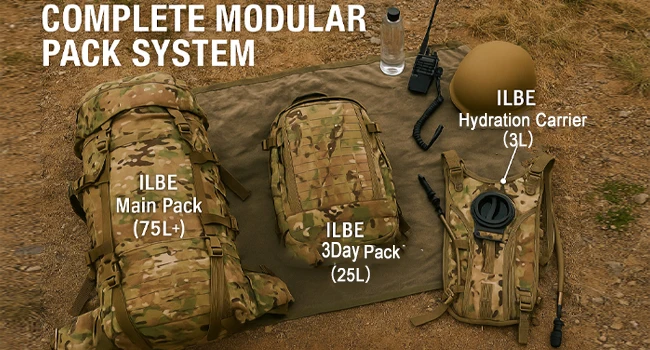 ILBE Military Rucksack System – Reviving a Classic – This 100+L tactical backpack system is a faithful reproduction of the legendary ILBE loadout, once the most expensive and advanced military carrying system in history.