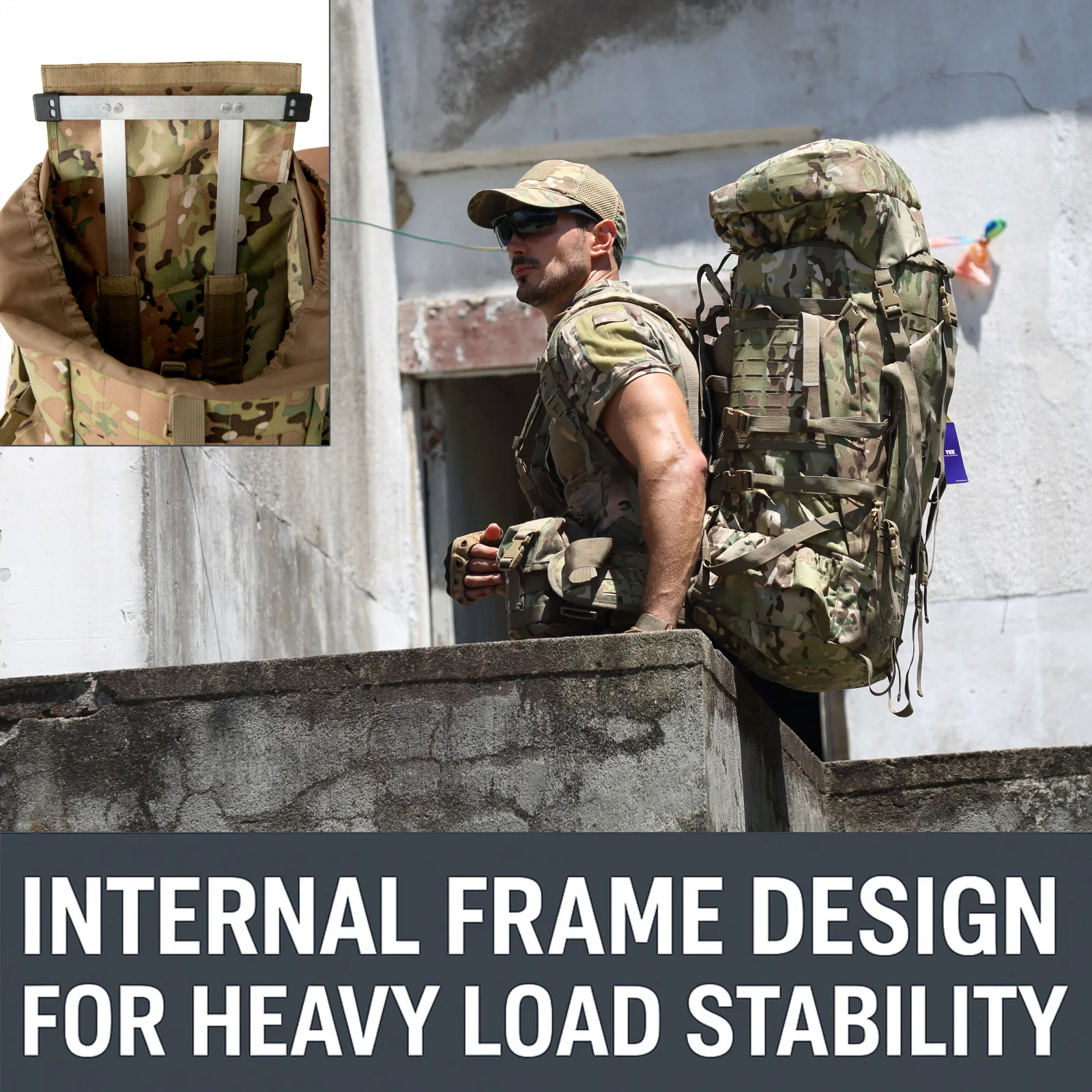 Durable Construction: Made from high-strength nylon materials with reinforced stitching and a robust internal metal frame, this rucksack is built to endure harsh environments and heavy-duty use.