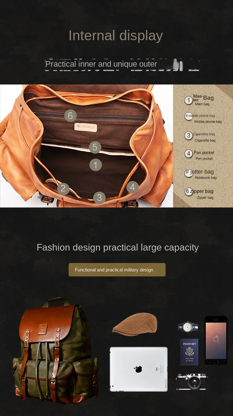 - Leather Material: First Layer Cowhide