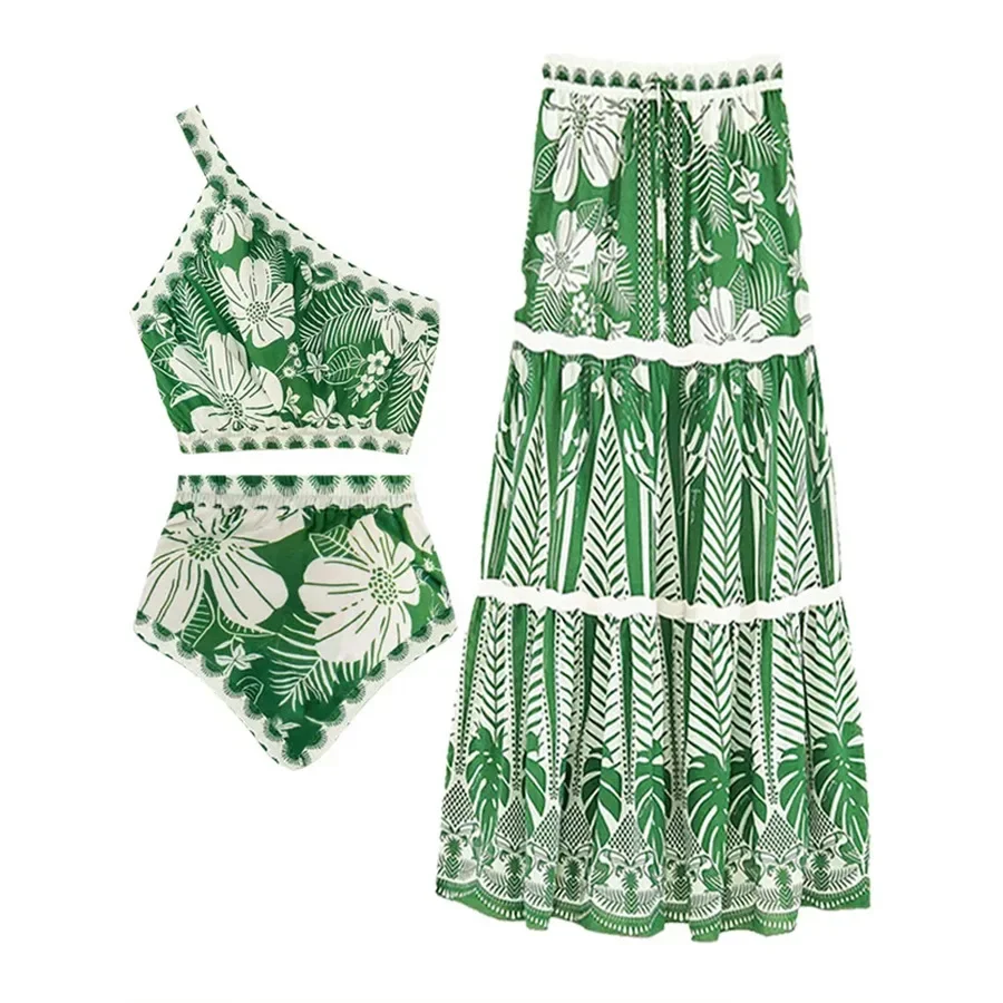 2025 New 2-Piece Printed Diagonal Shoulder Swimsuit with Cover Up Sexy Women Swimwear PushUp Biquini Bathsuit Bodysuit Beachwear