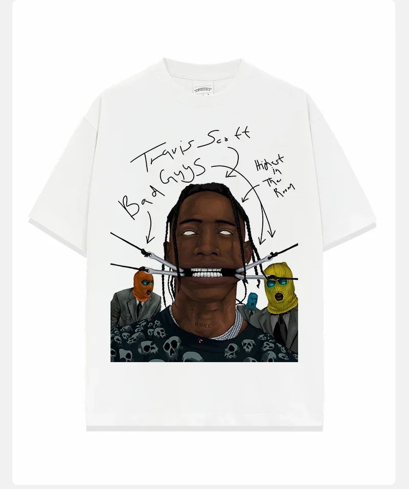• Retro Hip-hop Design : Embrace retro vibes with this Travis Scott printed T-shirt, perfect for those who love hip-hop culture.