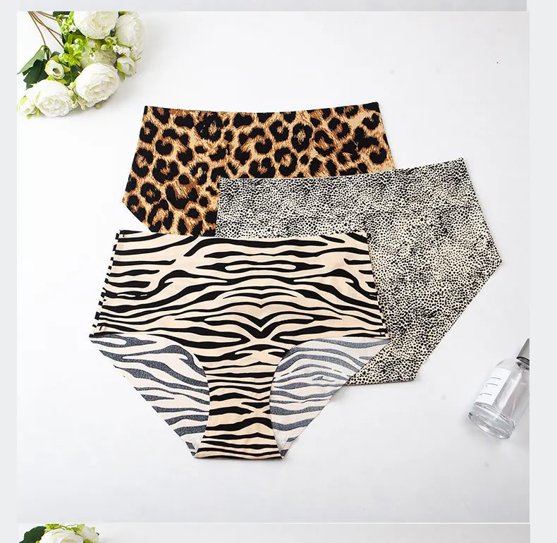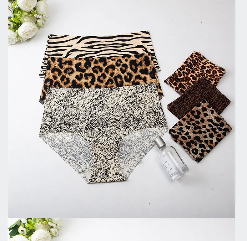 6pcs Women Leopard Print Panties Female Seamless Ice Silk Briefs Sexy Large Size Lingerie Underwear Ladies Breathable Underpants