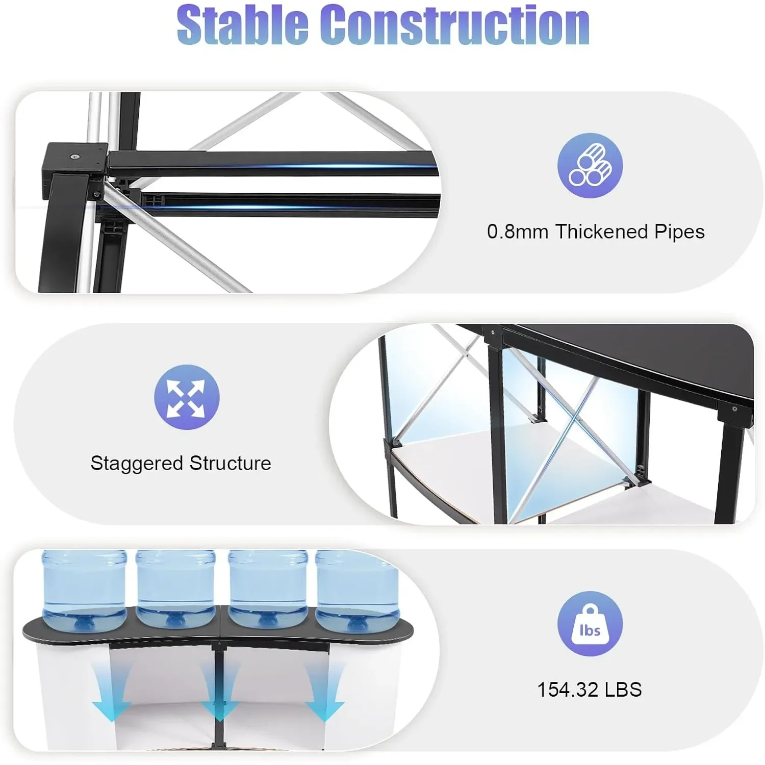 Rounded Corners: The rounded corners of this trade show counter make it not hurt hands, which is safe to use.