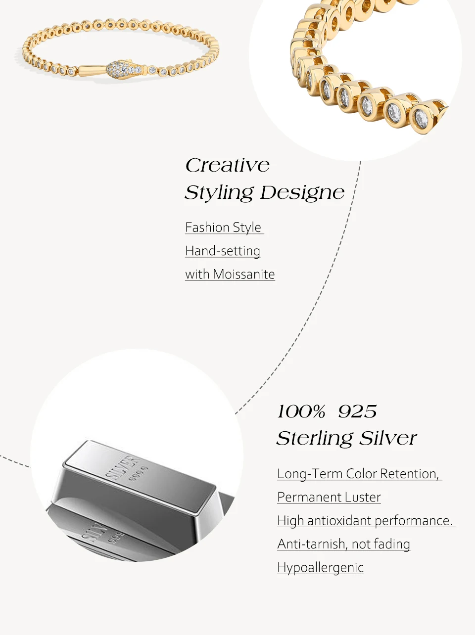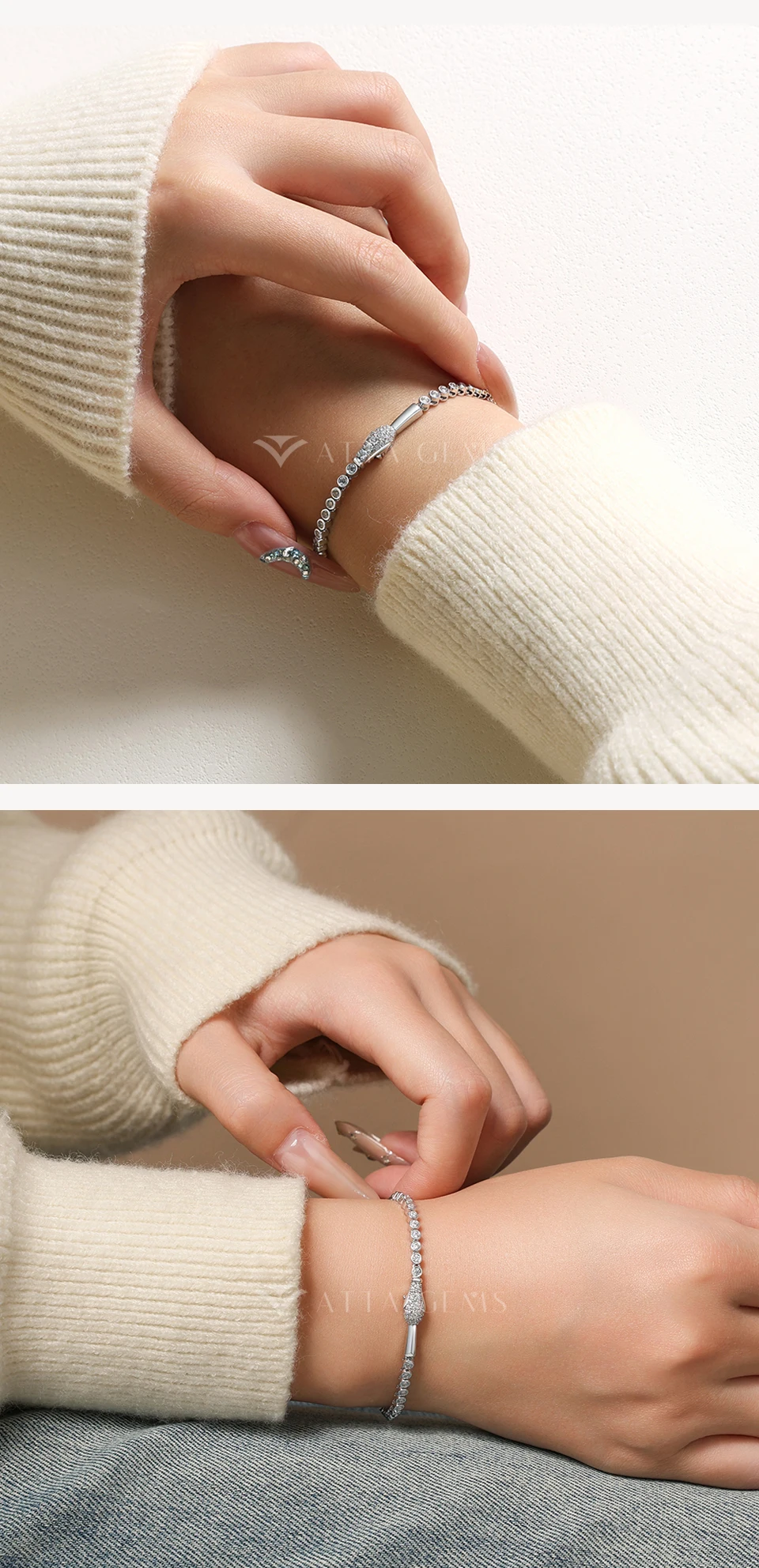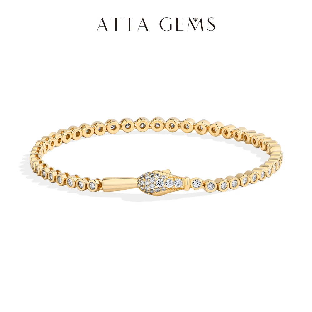 ATTAGEMS Original Snake Lock Tennis Bracelets S925 Sterling Silver Round Cut Moissanite Bracelet For Women Men Certified Jewelry
