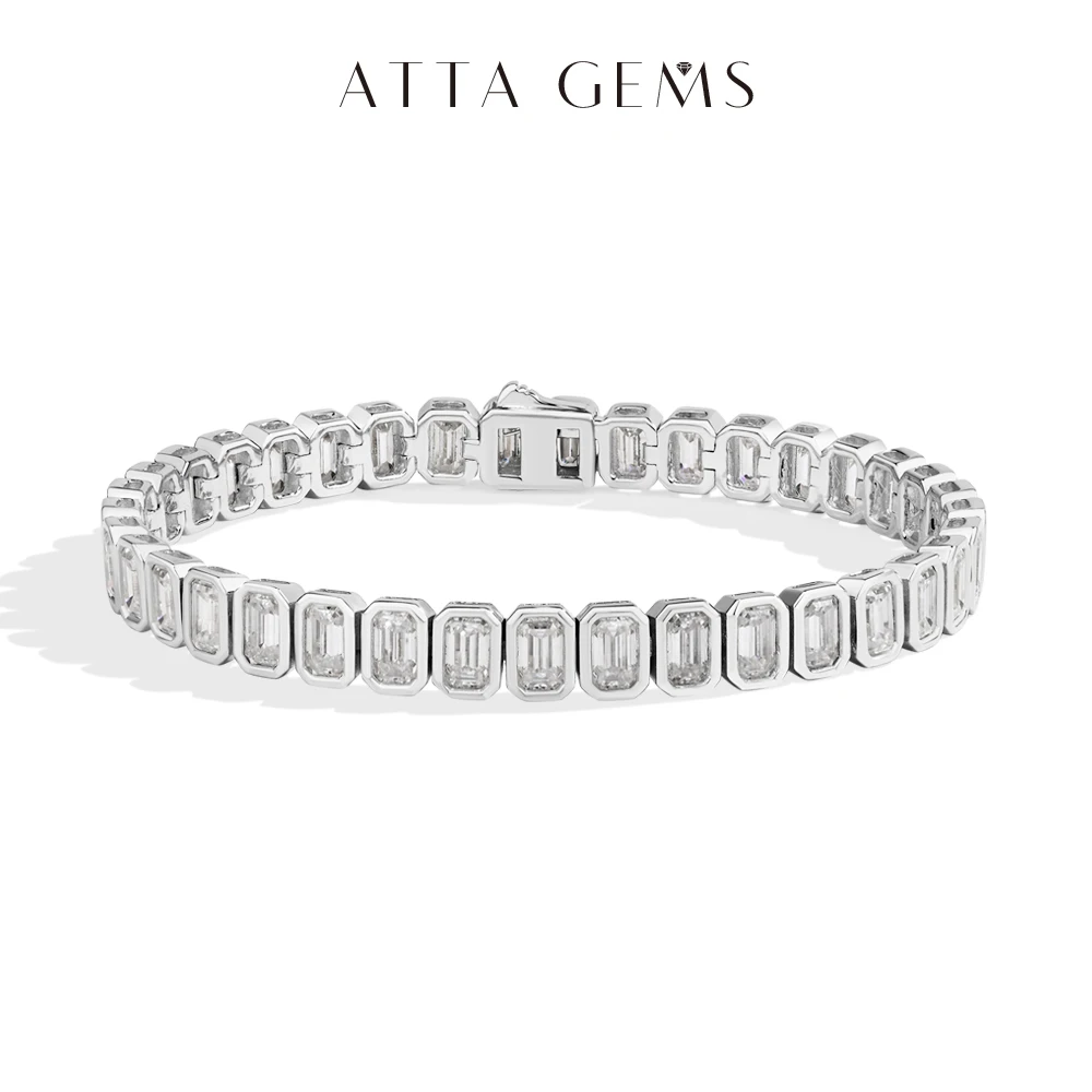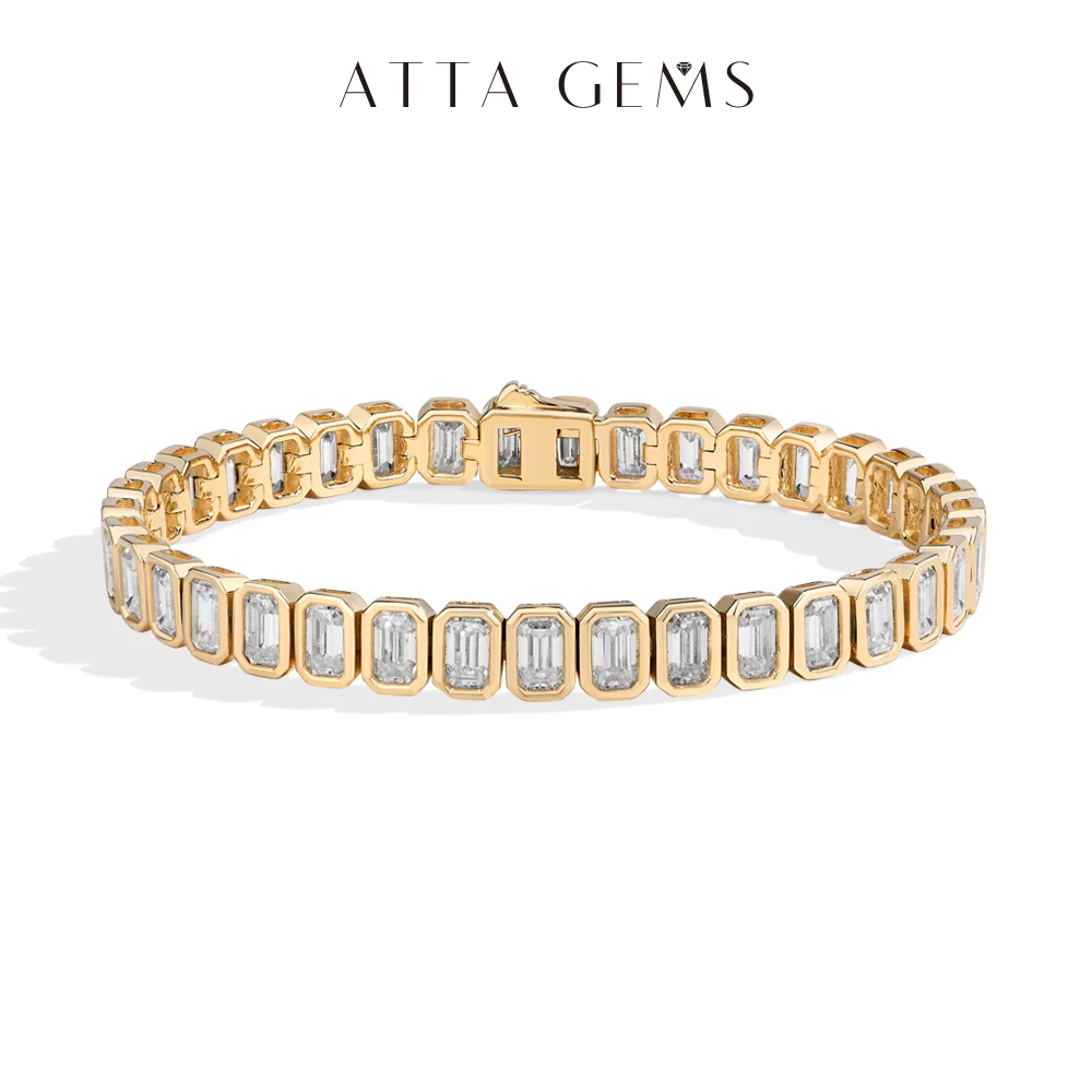 ATTAGEMS Zirconia Tennis Bracelet Emerald cut 5*3mm For Women Man 925 Sterling Silver Gold Plated Wedding Fine Jewelry Gift New