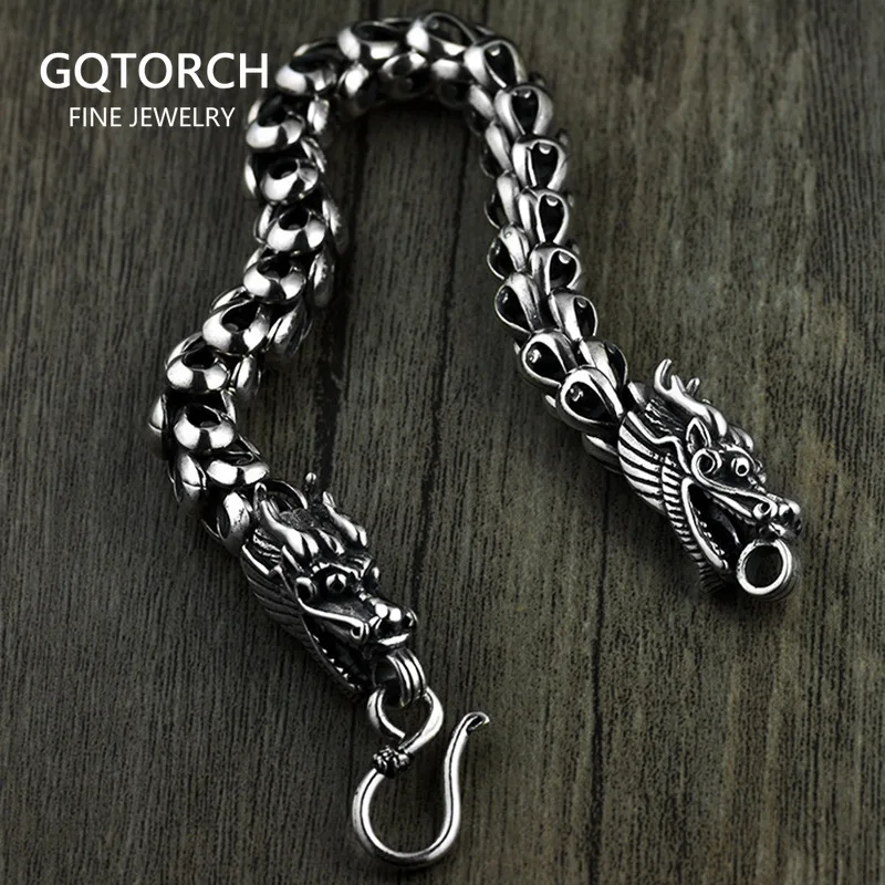 Dragon Scale Bracelet Chain Real Pure 925 Sterling Silver Double Heads Vintage Punk Rock Retro Style Men Viking Jewelry