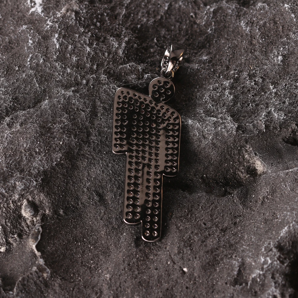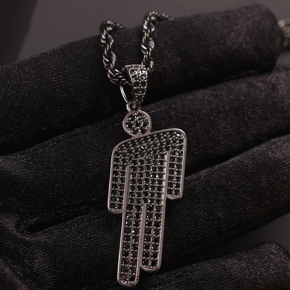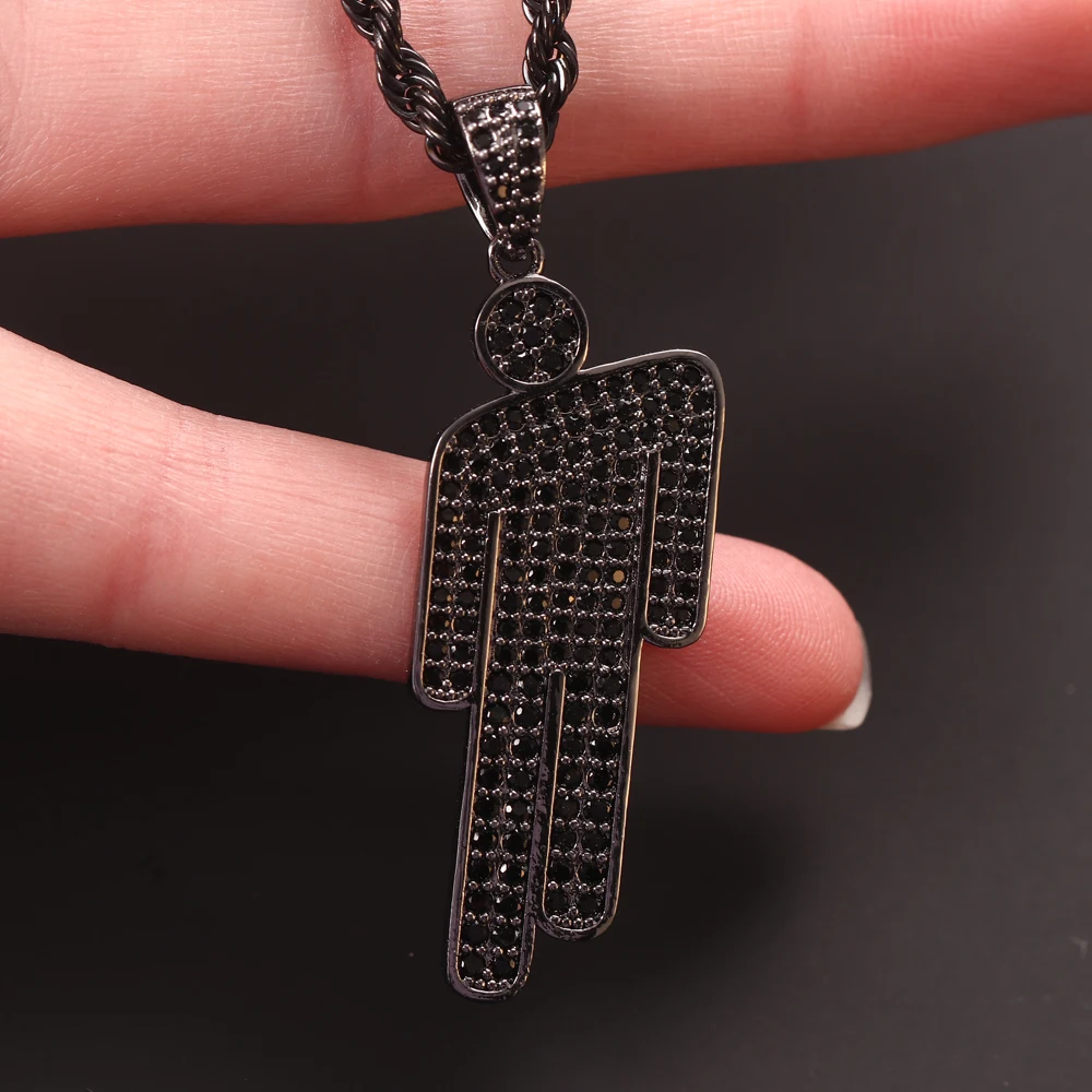 Hot Hip Hop blosh billie eilish Pendant Necklace Jewelry Rapper Accessories black Zircon Tilted Head Pendant Men Women necklace