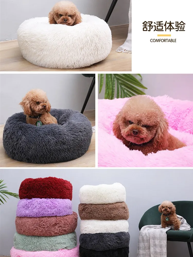 Dog Beds for Small Dogs Cat Nest Round Dog Kennel Dog House Long-haired Mat Cat Mattress Pet Nest Princess Dog Bed