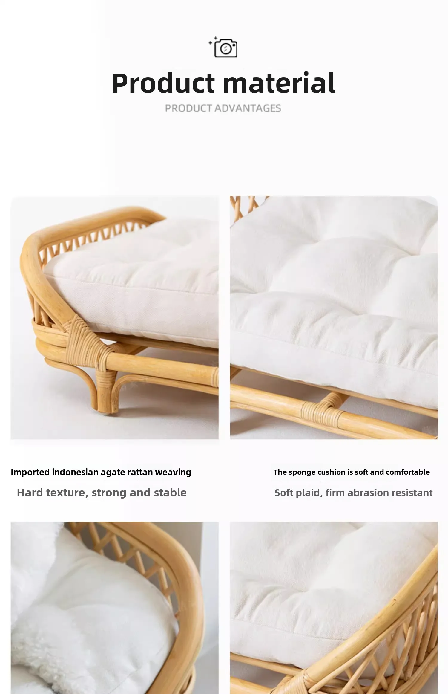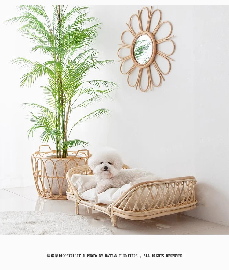 Woven Rattan Dog Bed All-Season Pet Bed for Small and Medium Dogs Handmade Cat and Dog House Durable Pet Furniture for Indoor