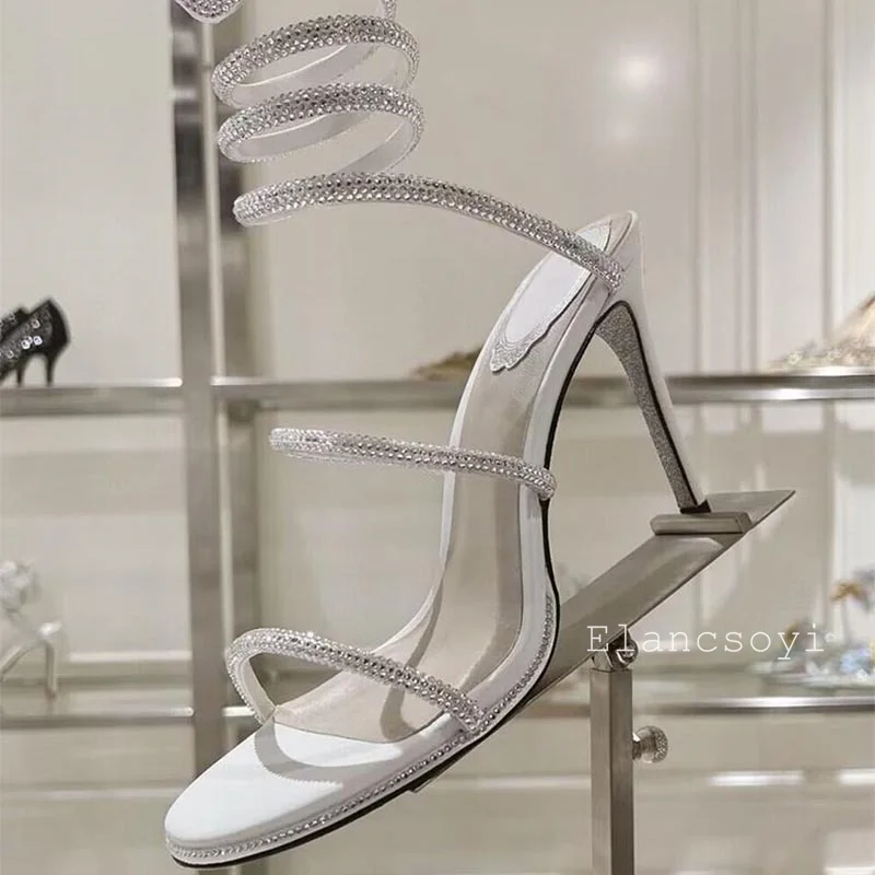 High Heels Gladiator Sandals Women Shiny Rhinestone Ankle Snake Shaped Winding Party Shoes Sexy Thin Heels Open Toe Sandalias