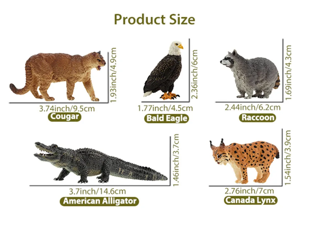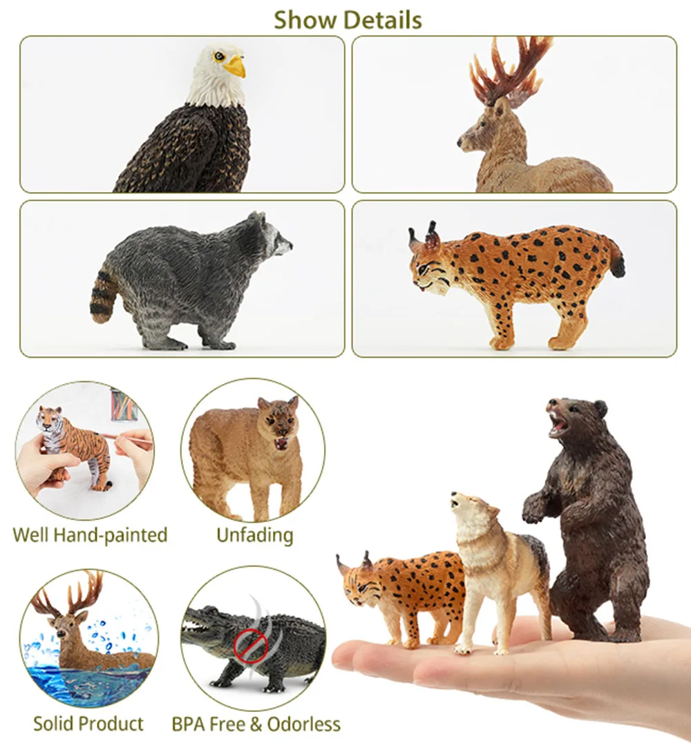 Discover the wilderness with this vibrant set of 12 lifelike North American forest animal figurines, ideal for educational play and discovery.