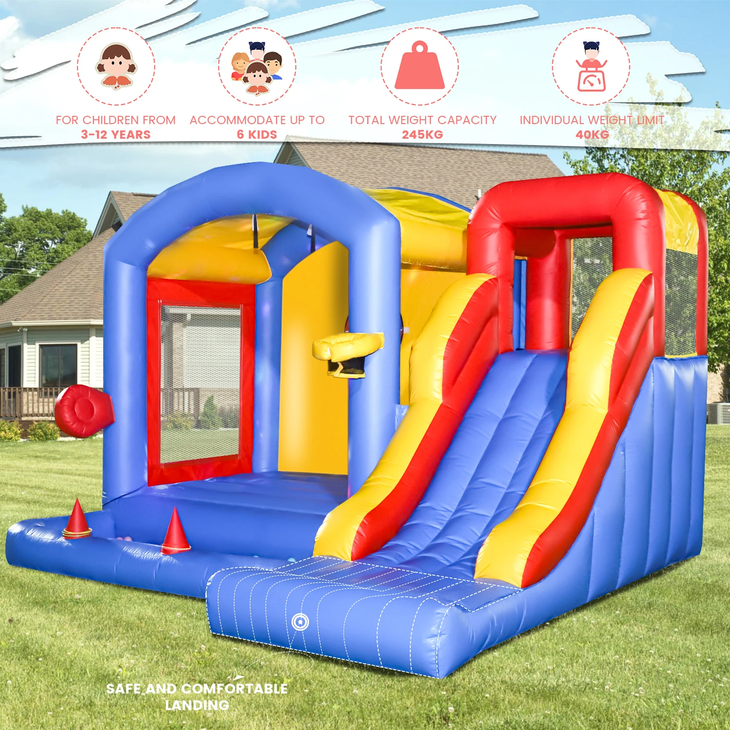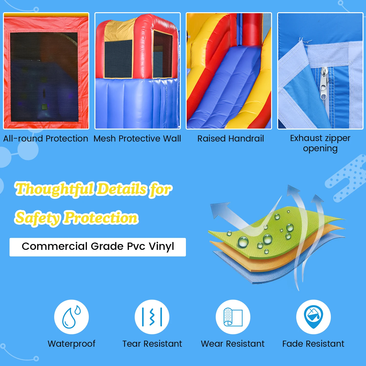 【Commercial PVC Material】Our kids bounce house is made from 100% PVC commercial material,its tarpaulin joints are made of double-edge reinforced stitching,which is much more heavy-duty wear than single or double stitching,complex craftsmanship brings better load-bearing capacity.𝙉𝙤 𝙀𝙭𝙥𝙡𝙤𝙨𝙞𝙫𝙚 𝙇𝙞𝙣𝙚