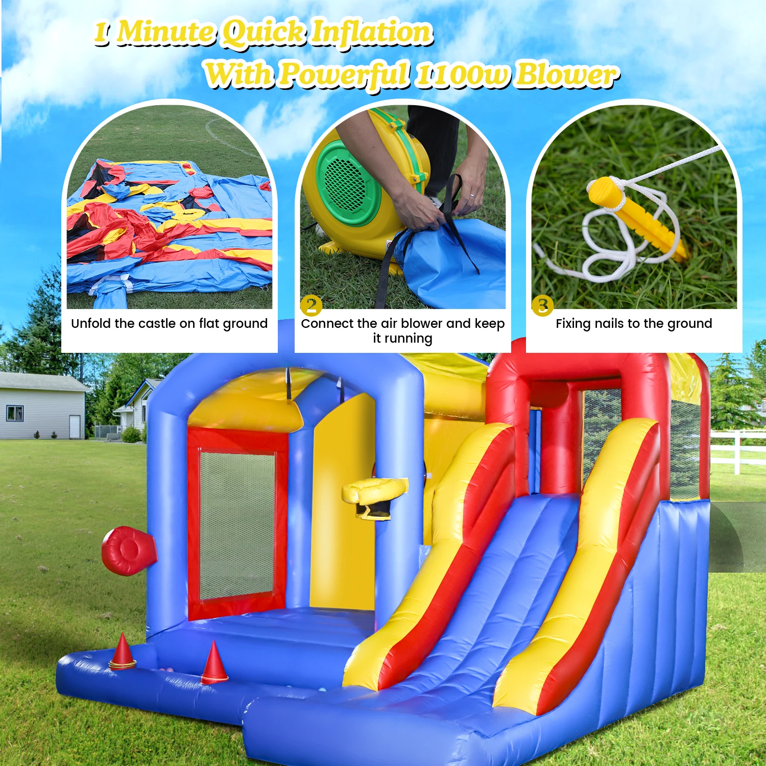 【Endless Bounce Fun】Our bounce house with ball pit for big kids 8-12 offers many exciting activities including trampoline + dartboard+ climb wall+ slide+ ball pit + basketball hoop +boxing+ring toss.This reasonable division of playing region ensures that your kids can enjoy a range of activities that cater to their diverse interests and energy levels